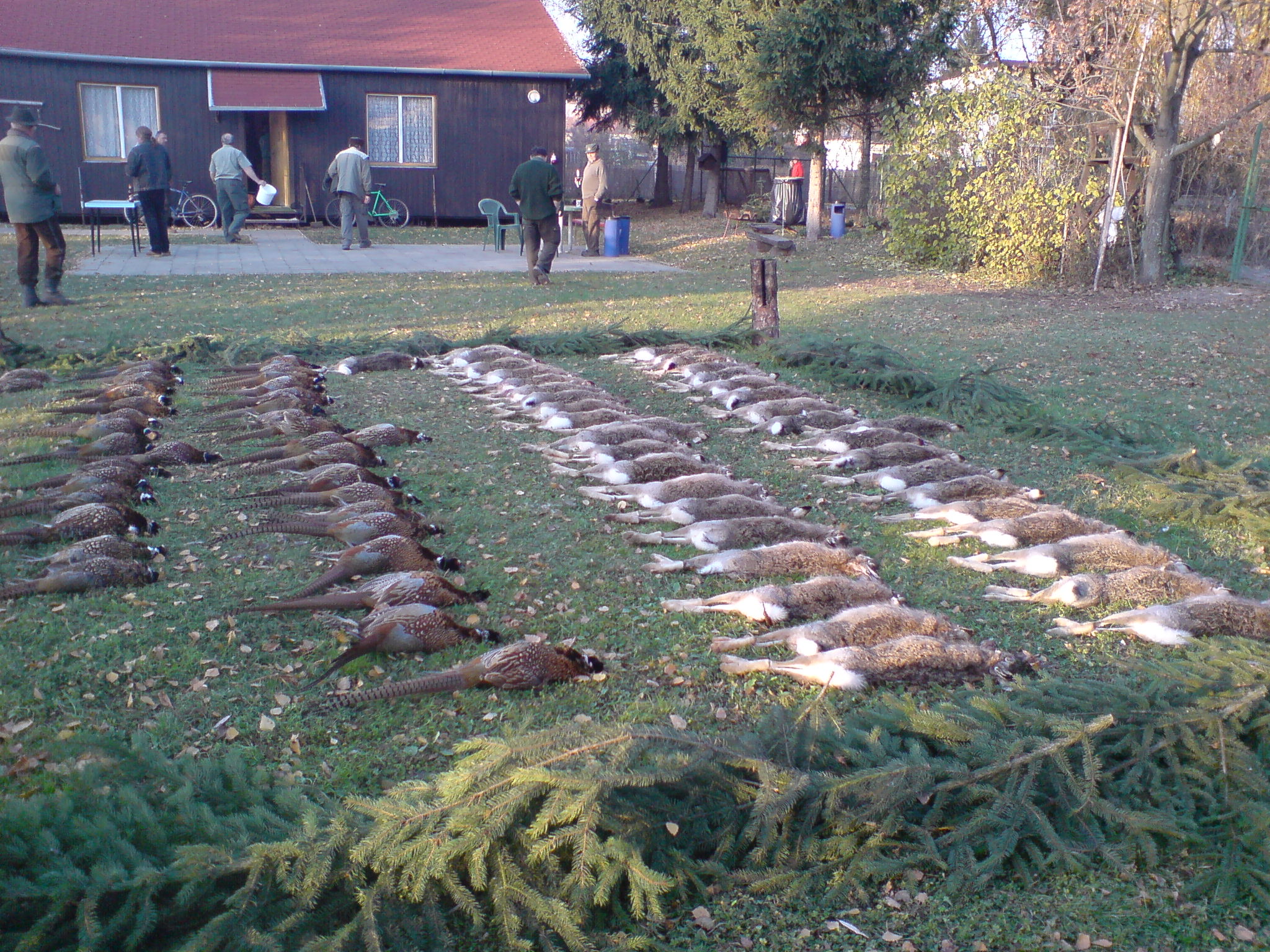 Tentokrát nás pozvali na hon kamarádi z Hlinska u Přerova. Oproti minulému honu, kdy vládl třeskutý mráz mínus 25 stupňů nás přivátalo jemné mrholení. Na nástupu byl za zvuku borlice sdělen plán lovu a vyrazilo se k lovu. Během čtyř lečí byly uloveny dva kusy černé zvěře, 5 kusů zajiců a 35 kusů bažantí zvěře. Měl jsem možnost vystřelit černou zvěř, ale jaksi nereagovali na moje vyslané rány :o))
