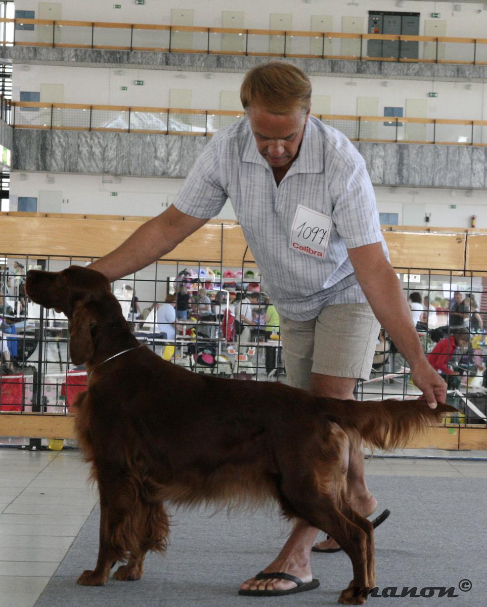Posudek: velmi elegantní fena, typicky irského výrazu s typickou hlavou, výborně stavěná a vyvážená, sebevědomá povaha, výborná mechanika pohybu, vědoma si své krásy